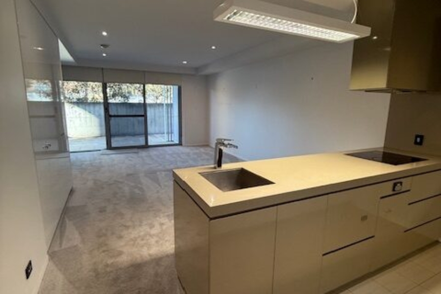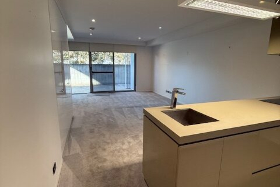 This modern one bedroom unit is located on the ground floor, with a generous paved outdoor courtyard that comes off the main living area and Master bedroom.