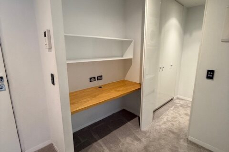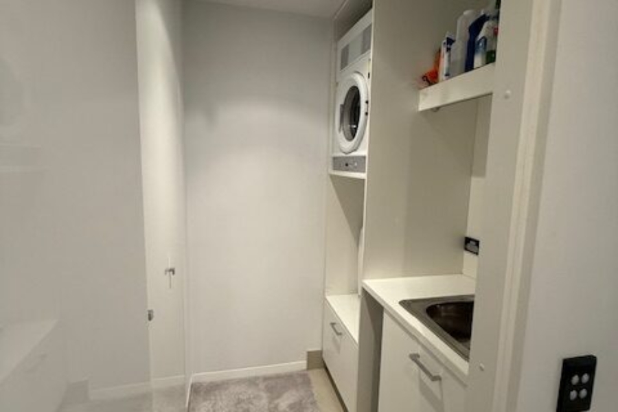 Study nook and separate laundry with more storage available.